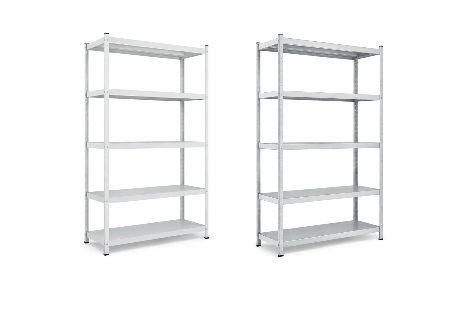 The shelving system is manufactured from cold-rolled steel, ensuring structural stability and long service life. All metal elements are protected with a galvanized or powder-coated finish, which increases resistance to corrosion and allows use in rooms with increased humidity.