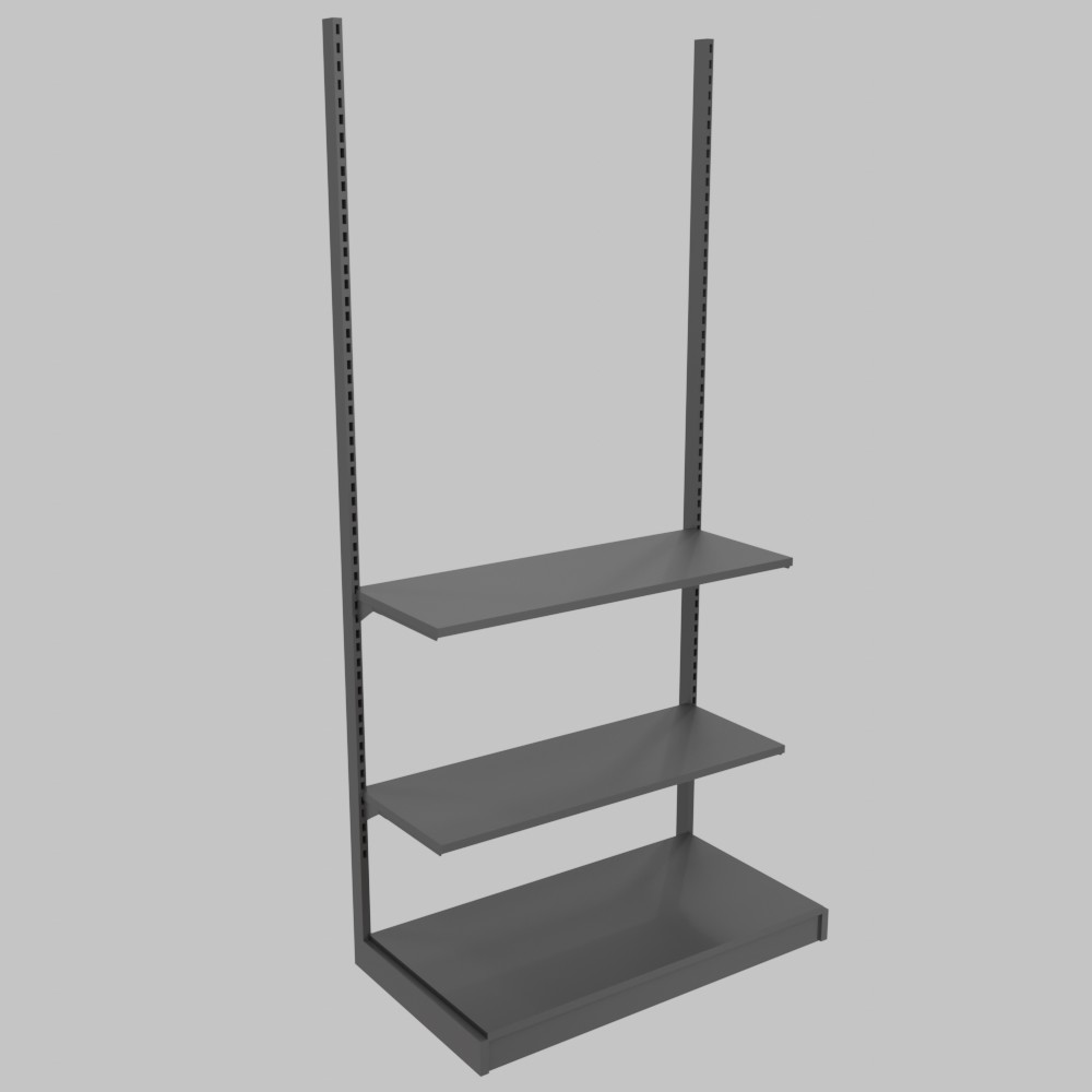 This shelving unit performs best in spaces of 15–50 m², where every element of retail equipment matters. The target audience includes individual entrepreneurs, small businesses, retail startups, temporary trade projects, and exhibition organizers. The unit integrates well with other retail equipment, enabling phased creation of complete retail solutions.